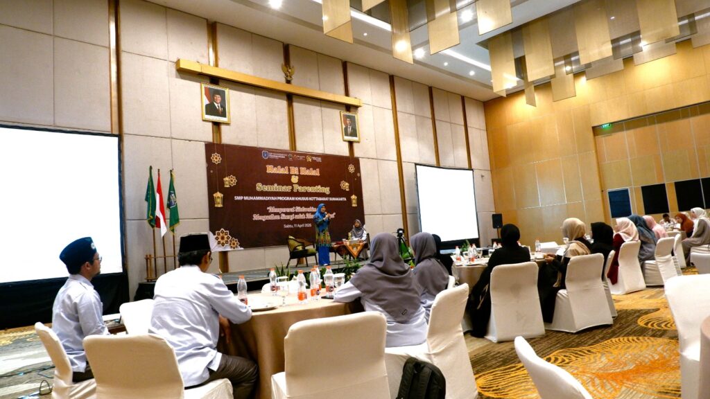 SMP Muhammadiyah Program Khusus Kottabarat Surakarta menggelar seminar parenting dan halal bihalal pada Sabtu (11/4/2026) di ballroom Harris Hotel Solo. Kegiatan ini diikuti sekitar 400 orang tua wali siswa dari kelas 7, 8, dan 9 sebagai upaya mempererat silaturahmi dan menguatkan sinergi antara sekolah dan keluarga.
